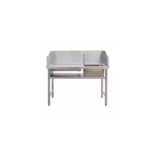 Industrial-grade stainless steel table designed for fish and meat handling.