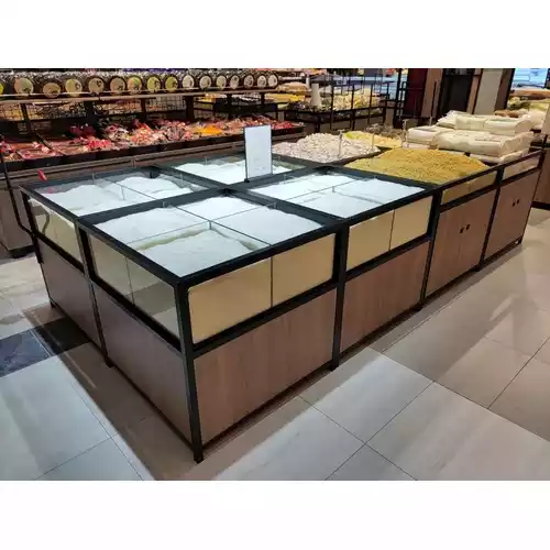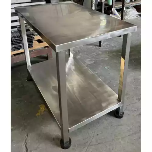 Industrial-grade stainless steel table designed for fish and meat handling.